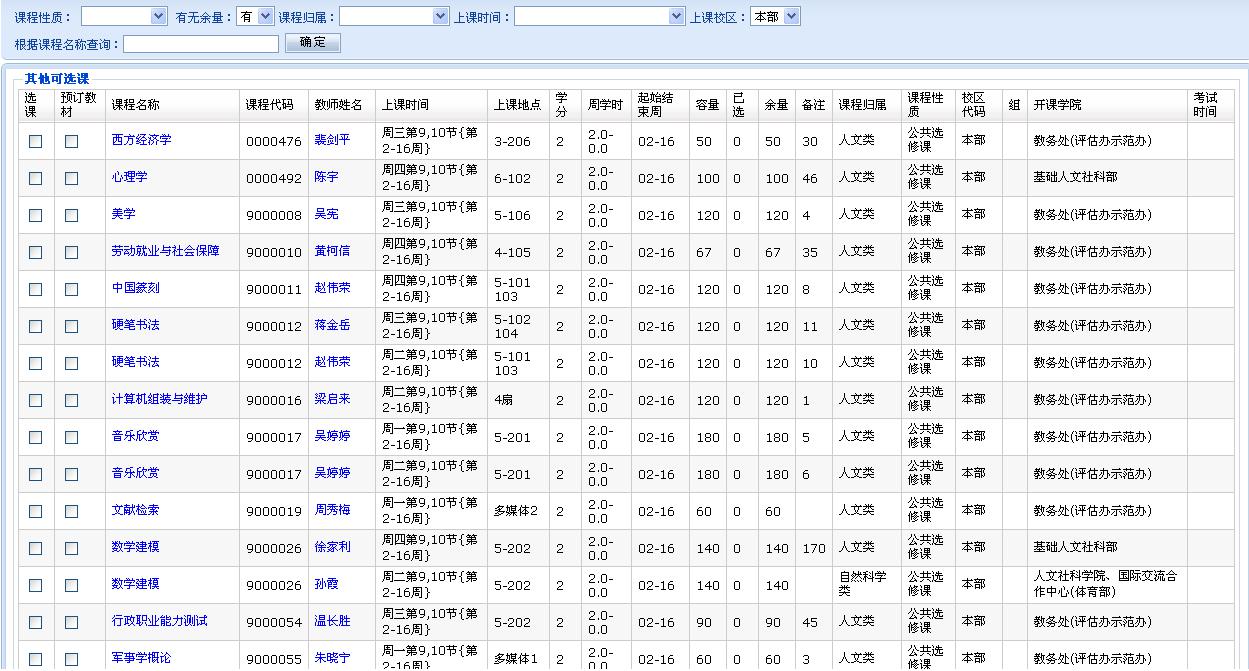 2、第二轮报名时间:2015年3月13日(第一周周五)12:30——2015年3月16日(第2周周一)12:00。此阶段为补、退选和最后确认阶段。