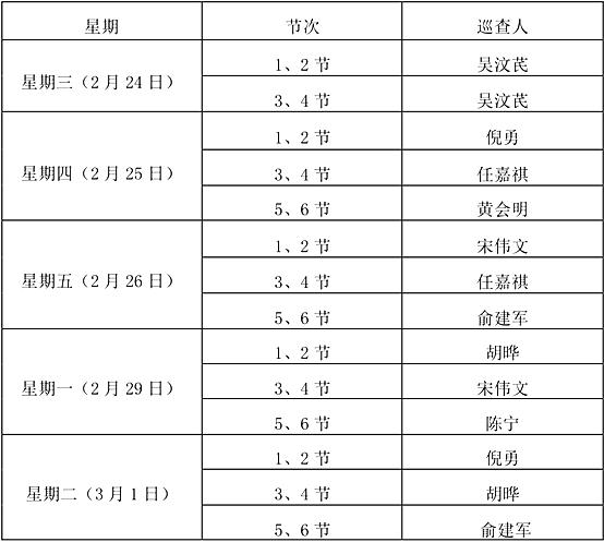 为了保证教学工作的平稳运行,更好地做好分院教学督查工作,特制定针对汽车工程学院学生进行第一周上课巡查安排。