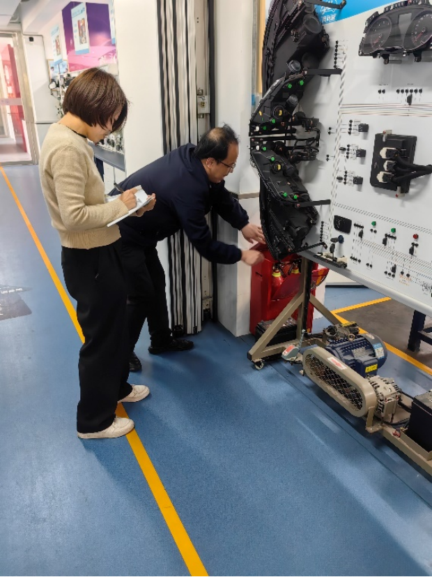 4月27日下午,王循明副院长及实训管理老师对分院汽车及轨道交通实训室安全工作进行了专项检查。本次检查内容主要包括消防安全、防火疏散、环境卫生、防疫消杀、用电安全、机械防护安全、危险物品存放等。王副院长强调,要深刻认识实训室安全工作的重要性,不断强化实验实训工作中的安全红线意识,绷紧安全弦,做到把责任扛在肩上,把行动落到实处,为师生创造安全绿色教学环境,为构建和谐校园、平安校园奠定坚实基础。
