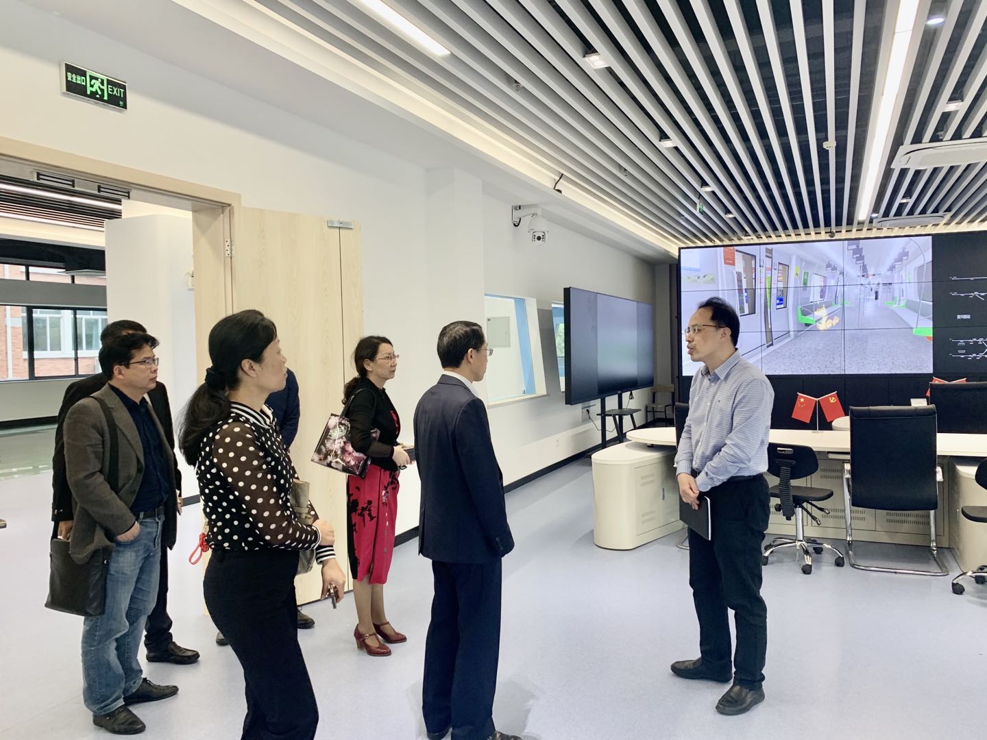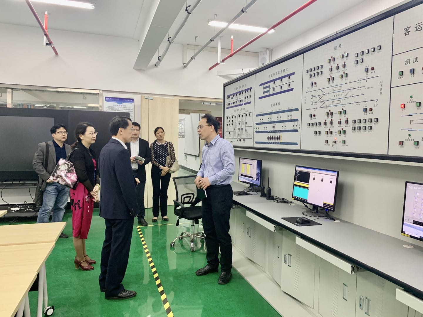 在实训基地,王循明副院长详细介绍了实训大楼的整体建设方案以及各楼层实验实训设备的配置情况。该基地先后被列为国家发改委“十三五”产教融合发展工程规划项目和浙江省轨道交通产教融合联盟产教融合共享实训基地,依托该基地建成了浙江省唯一的国家级轨道交通职业技能鉴定站。