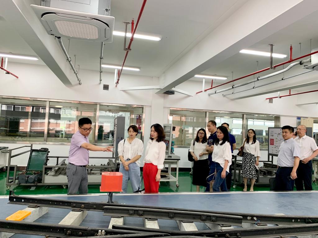 在边院长的带领下,参观领导一行走进实训基地的每一间实训室,深入了解了实训室的软硬件配置、教学功能、教学模式及面向的岗位等相关情况。郝蕾部长仔细询问了分院城市轨道交通机电技术专业推进产教融合的主要措施、校企订单班的人才培养模式和就业情况等,并对分院在实验实训环节理实一体化的教学方法和校企合作协同育人的成功经验进行了深入调研。