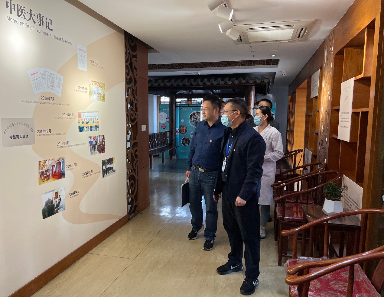 签约仪式后,学院一行参观了浦沿街道社区卫生服务中心,立体化、多角度、全景式地感受其作为全国中医药特色社区卫生服务示范区的发展历程。参观过程中,双方就党建工作经验进行了深入交流,表达了将努力搭建党员沟通桥梁,深化校医协同发展,形成融合共赢良性循环的决心。