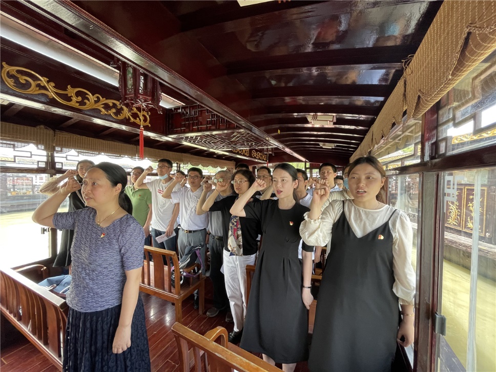 学好党的历史,了解过去才能把握今日,把握今日才能创造更美好的明天。2005年6月21日,时任浙江省委书记的习近平同志首次提出并阐释了作为中国革命精神之源的“红船精神”,他将“红船精神”概括为“开天辟地、敢为人先的首创精神,坚定理想、百折不挠的奋斗精神,立党为公、忠诚为民的奉献精神”。在南湖画舫上,沿着中共一大在南湖的轨迹,学院全体教师认真聆听了主题为《弘扬红船精神,践行初心使命》的党课,重温了中国共产党百年来砥砺奋进的伟大历程,感受了一代又一代中国共产党人接力为争取民族解放、国家独立而浴血牺牲的革命战争史,历经曲折与磨难,为取得民族复兴、国家富强、人民幸福而不懈奋斗的新中国建设史,波澜壮阔的党史进一步深化了老师们对“红船精神”的理解和认知,更加坚定了老师们赓续“为党育人、为国育才”的初心和使命。