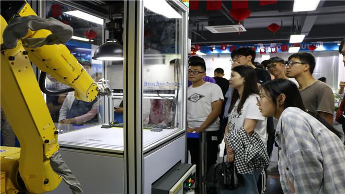 我系学子首先参观了小镇展览厅,在工作人员的讲解下,学生了解了小镇运营模式、产业培育及未来发展规划。云栖小镇以“政府主导、名企引领、创业者为主导”为发展模式,有一批创业创新代表人物如阿里巴巴集团技术委员会主席、中国云计算领域的领军人物王坚博士,是一个着力建设以云计算、大数据和智能硬件产业为核心的特色小镇。在云栖小镇展览厅,我系学子见到了很多先进的科技产物,比如智能插座、虚拟漫游、5G车联网等。学生们不仅仅是用双眼感知发达科技,更是亲身体验了科技产品。为更详细了解小镇的企业生态,我系学子随后参观了硬功馆和杭州博拉科技有限公司。硬功馆致力打造一个开放的硬件能力中心,从而降低硬件创业门槛、提升社会硬件研发能力,其开放的实验室免费帮助创业者从创意到样机的实现。杭州博拉科技有限公司是一家以工业机器人自动化、机器视觉、工业物联网、工业云平台为核心,专注于“中国制造2025”、“工业4.0”及“两化融合”核心驱动技术和产品研发的高新科技企业,主要面向汽车零部件、新能源、航空航天、生物制药行业,帮助客户搭建数字化、信息化、智能化平台,提供智慧工厂总体解决方案。