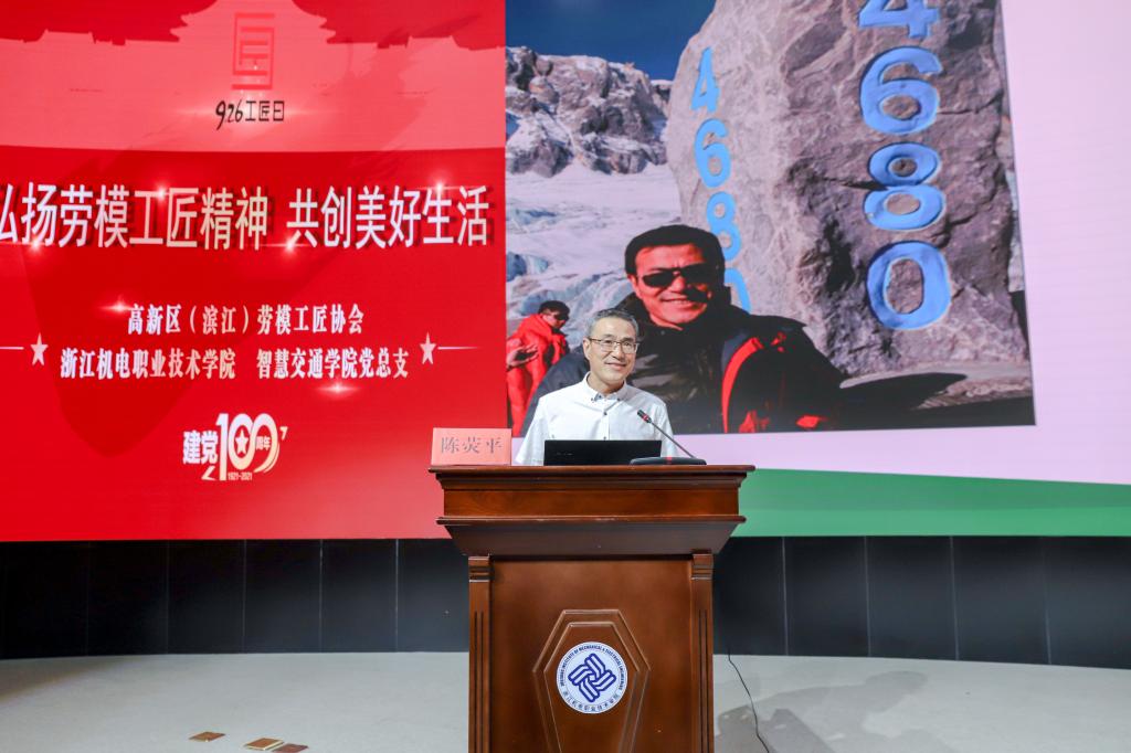 为积极营造弘扬劳模精神、建功新时代的浓厚氛围,推动党史学习教育往深里走,往实里走。在工匠日到来之际,9月22日智慧交通学院党总支邀请浙江省优秀党务工作者、杭州市劳模、杭州高新区(滨江)劳模工匠宣讲团成员、聚光科技(杭州)股份有限公司党委书记陈荧平,杭州市劳模、杭州高新区(滨江)劳模工匠协会副会长、秘书长鲍雄亮来校开展“弘扬劳模工匠精神,共创美好生活”先进模范进校园活动。校纪委书记王斌、智慧交通学院院长边浩毅、副院长王循明、智慧交通学院全体教师和学生代表聆听了报告。报告会由智慧交通学院党总支书记宋伟文主持。