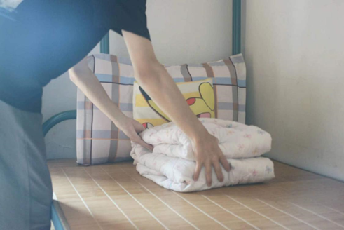 摊平被褥,