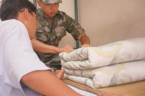 “一屋不扫,何以扫天下!”为引导2022级新生养成良好的生活习惯,营造整洁舒适的生活环境,在近日的内务整理科目中,教官们带领2022级学生强化学习了寝室内务整理。