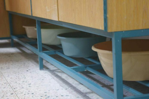 阳台的桶摆放得整齐划一,