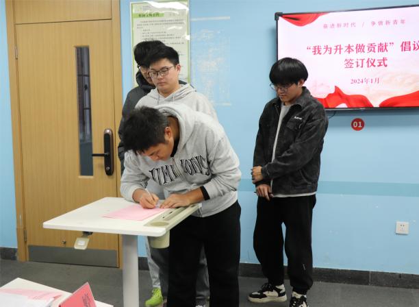接着团总支副书记屠超杰宣读“我为升本做贡献”倡议书,号召全体交通学子从现在开始,从自身做起,从小事做起,用端正的态度、饱满的精神、扎实的学风、文明的行为、精彩的表现为学校升本工作贡献自己的力量。在争创特色鲜明、国内一流、国际知名的高水平职业技术大学的征程中,共同书写青春的华章!团员代表纷纷在倡议书上签字。