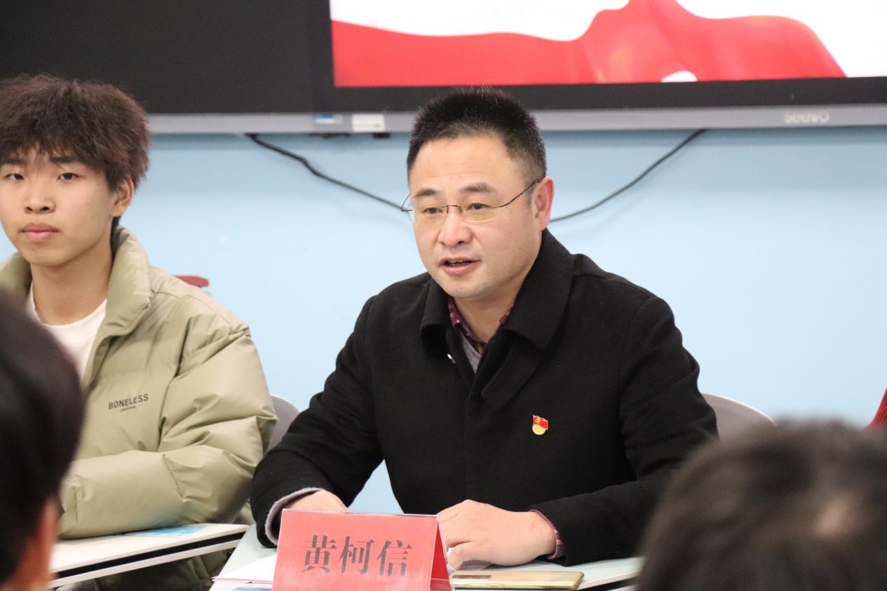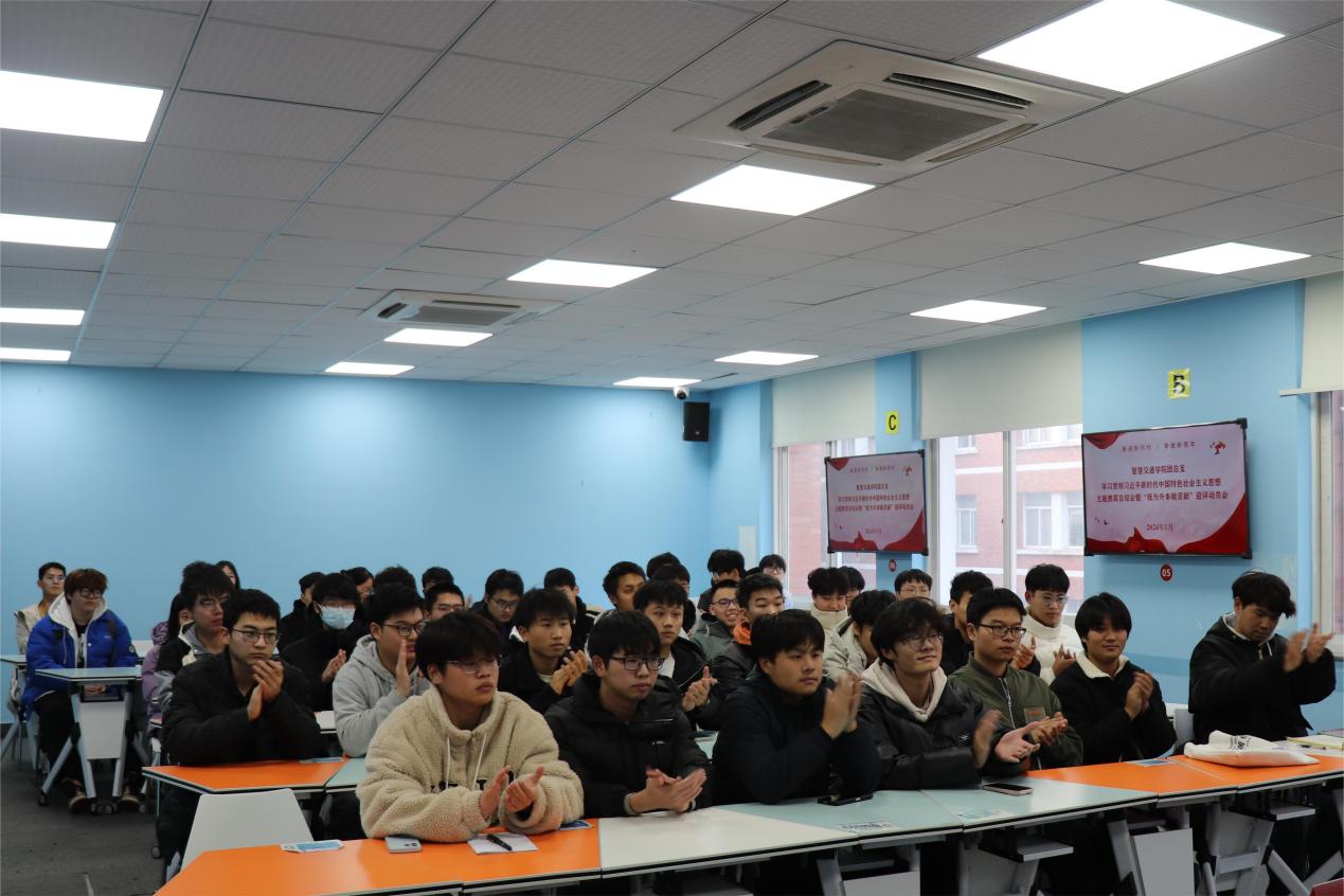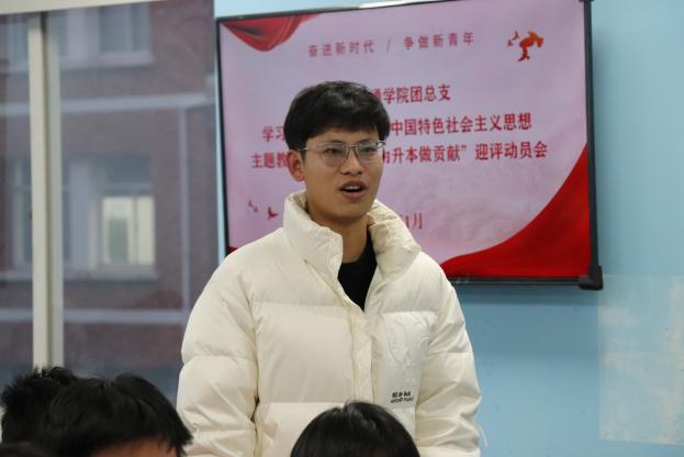最后,智慧交通学院党总支书记黄柯信发言。黄书记首先肯定了前期主题教育的成效,同时对团总支、各团支部和全体团员青年们提出四点要求。一要提高政治站位。作为团员青年,要时刻牢记自己的责任和使命,深刻理解升本评估工作的重要性,站在全院的高度去思考和行动,确保升本评估工作的每一项任务都能得到有效执行。二要强化责任担当。团员要以身作则,树立良好的学习和行为典范。在学习和生活中都要严于律己,维护团员的良好形象,积极参与学院的各项管理和服务工作,为创建良好的学习环境和校园文化贡献力量。三要积极参与实践。团员们应该主动投身到升本迎评工作中,确保每一项准备工作都精益求精。四要加强宣传引导。团总支及各团支部要充分利用宣传栏、微信公众号、学院网站、宣传教育活动等,广泛宣传升本评估的重要性及相关知识,提高全体师生的认识和参与度,激发大家的责任感和使命感。最后,他号召全体团员以饱满的热情、昂扬的斗志,充分发挥先锋模范作用,积极参与到升本评估工作中来,为学院的发展贡献青春力量。