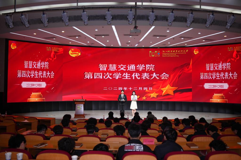 2024年12月4日晚,智慧交通学院第四次学生代表大会在综合楼四楼报告厅胜利召开。智慧交通学院党总支书记黄柯信、团总支书记姚婷,思政辅导员周传超、王红蕾,各年级学生代表出席大会。
