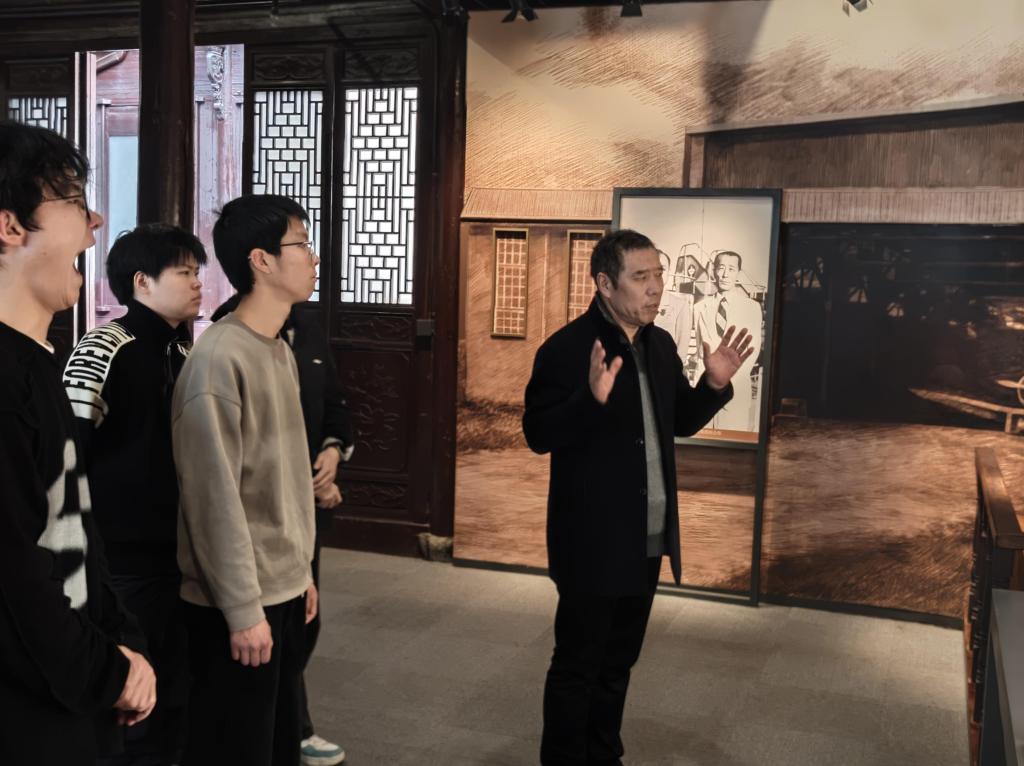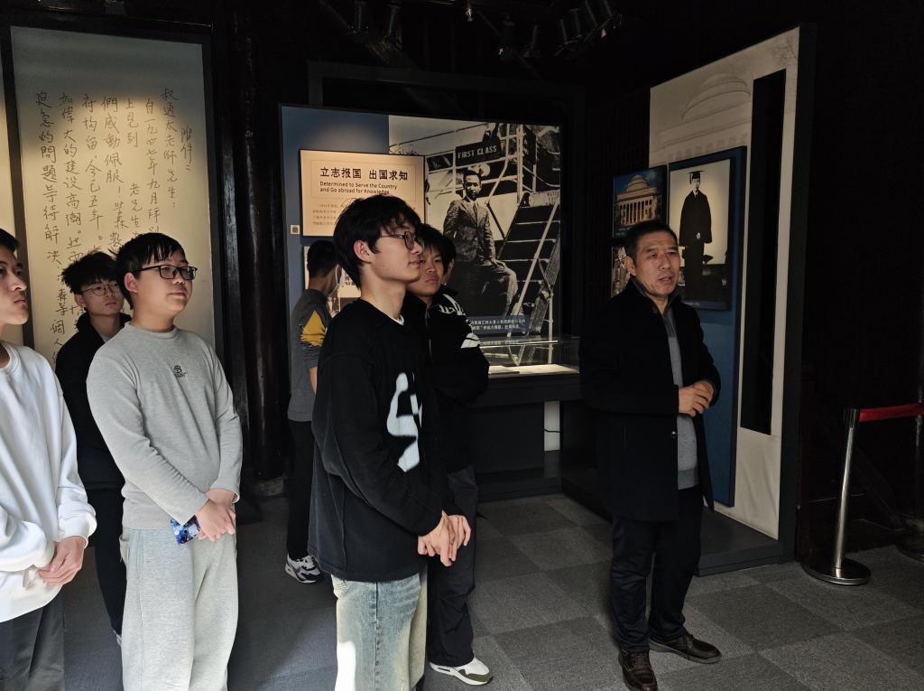 在钱学森故居内,杭州市非遗传承人鲁立清老师为学生们上了一堂生动的思政课。“一张泛黄的归国船票、一盏锈迹斑斑的台灯、一叠密密麻麻的演算稿……这些实物无声诉说着钱老‘科学无国界,科学家有祖国’的坚定信念。”鲁老师结合展陈娓娓道来:“从战火中发奋求学,到冲破封锁毅然归国,再到倾尽心血铸就“两弹一星”丰碑,钱学森用一生诠释了何为“国之大者”。同学们充分体会到了革命先辈的不易和艰辛,更是坚定了我们一心向党,一心为人民的决心。