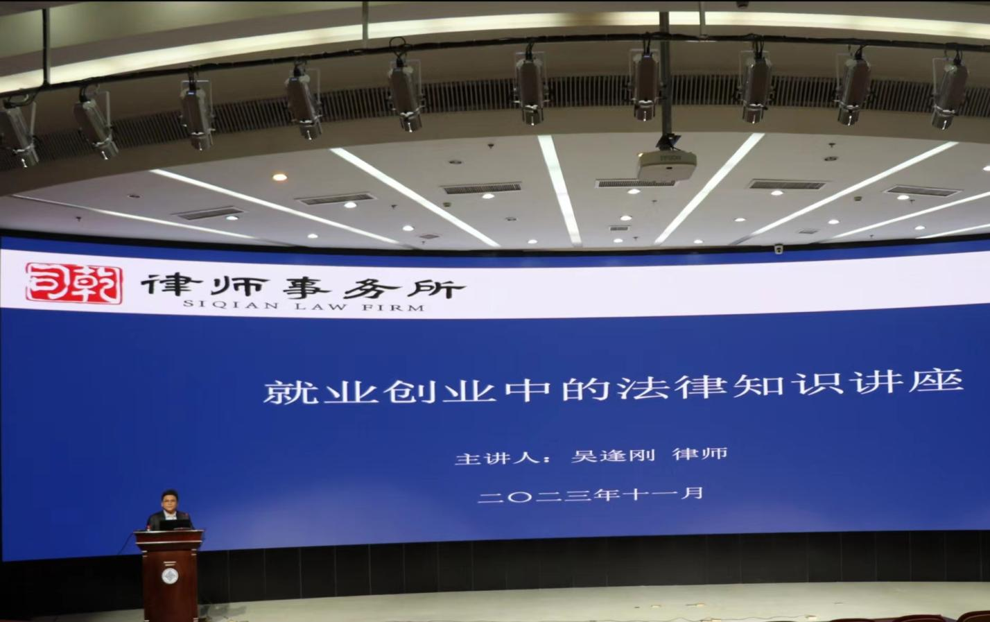 本次讲座邀请到浙江司乾律师事务所主任律师、创始合伙人吴逢刚主讲。讲座伊始,吴律师以经典案例为切入点,引发大家思考。他表示,就业创业中存在各类风险,其中法律风险是不容忽视的一个问题,他围绕“劳动者权利、劳动合同、职业风险、创业的基本法律知识”四个方面进行讲解。