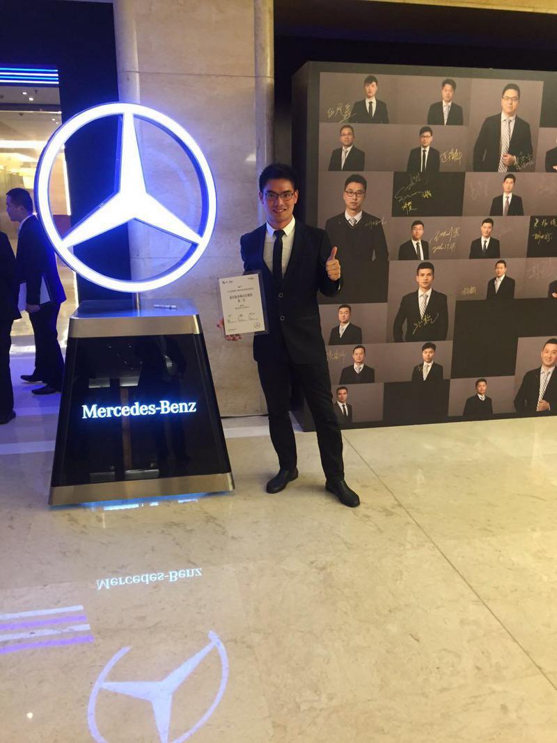 虽然创业未果,但是邵林锋在公司工作期间的优异表现还是让他获得了贵人的帮助,经原单位师傅的介绍,2012年11月,邵林锋开始在浙江星杭汽车有限公司工作,从事的岗位是车身维修顾问,工作的主要内容是为事故车制定维修方案、进行业务洽谈和保险理赔等相关工作。虽然在星杭工作,是邵林锋职业生涯的第三站,但是他依然以一个职场新人的初心来对待这份工作。他坚守自己所热爱的汽车维修专业,他让自己的心沉淀下来,在星杭公司踏踏实实地做了四年。2016年,机会终于开始垂青这个一直坚守的年轻人,梅赛德斯奔驰首次在全国范围内举办技能大赛,邵林锋被公司作为个人选手和团体成员选派参加该项比赛。这项比赛分为笔试和实操两个部分,邵林锋个人和他的团队经过层层选拔,通过了华东地区的选拔,赴北京参加全国比赛。不负众望,2016年11月,邵林锋获得梅赛德斯奔驰全国钣喷大赛个人最佳表现第二名以及团体赛第二名。在全国的技术比赛上,获得了大奖,邵林锋第一时间将这个喜讯告诉了学院培养他多年的陈宁老师。虽然毕业5年,陈宁老师一直与他保持着亦师亦友的关系,无论在技术上,还是在生活上都给予了他很多的帮助。