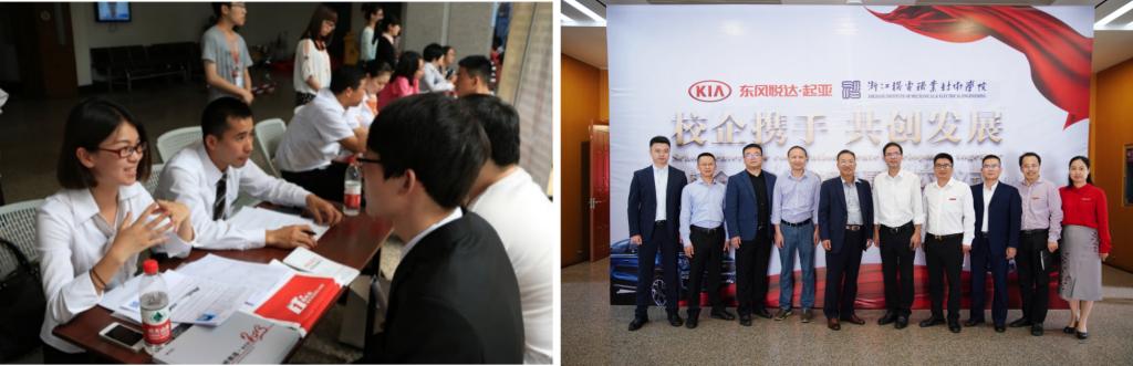 本专业与东风悦达起亚有DYK校企合作项目,DYK捐赠了百万元的资产设备,专业主要教师均通过DYK讲师认证。此外,专业与清华大学汽车研究院、中国汽车技术中心、上海大众汽车公司、吉利汽车公司、长安福特汽车公司、元通汽车集团、万向电动汽车公司、杭州长江汽车有限公司等数十家龙头汽车企业建立战略校企合作关系,开展“清研班”、“DYK班”等特色班运作,企业导师入校教学、学生在校内就可以应聘心仪的企业。