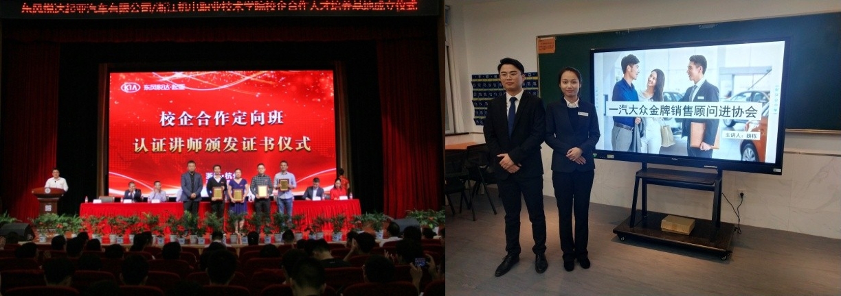 本专业拥有一批紧密合作企业,已在保时捷、宝马、奥迪等知名品牌汽车4S店共建校外实训基地,能为专业教师下企业锻炼、学生顶岗实习和就业提供“零距离”上岗机会。与东风悦达起亚汽车有限公司共建人才培养基地和专业课程,开设“起亚”订单班。