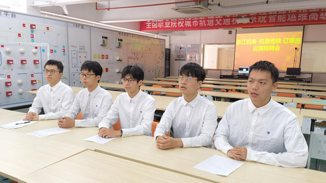 本次招聘中,学院以专业实训教室为背景,在举行面试的同时,同步展示学院实训环境、教学条件,增加学生面试信心,提高学生面试成功率。面试以小组方式进行,杭港地铁招聘团队对同学们进行了求职意向、生涯规划、专业问答等环节,同学们精神饱满,对答如流。随后,杭港地铁招聘团队也就公司规章制度、企业文化、福利待遇、组织机构等几个方面向同学们做了简单介绍,并线上解答了同学们的疑问,真诚邀请同学们加入杭港大家庭。