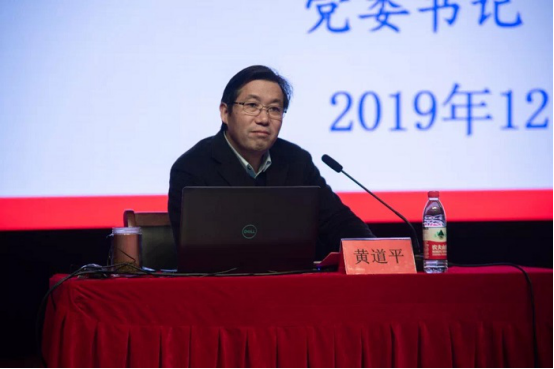 12月17日晚上,学院党委书记黄道平在5号楼报告厅为2019年“青马工程”学生骨干培训班作开班讲座,报告主题为“认真学习贯彻十九届四中全会精神,为‘中国之治’和‘省域治理’贡献智慧和力量”,与在场师生一起共话中国特色社会主义制度和国家治理体系发展的历史性成就、显著优势,展望祖国发展的美好未来。学院团委书记林洁主持报告,相关教师、学生干部近500余人到场聆听报告。
