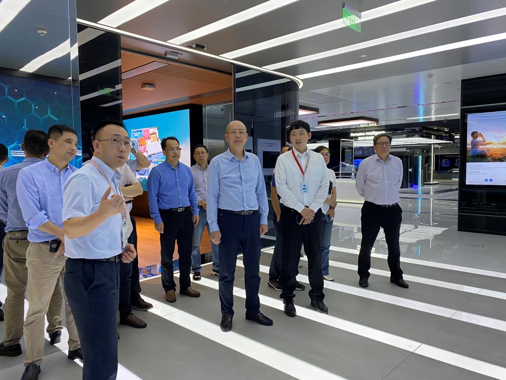 在华为总部,汤书记一行在华为杭州公司总裁赵环宇等陪同下,参观了华为园区和ICT展示厅。