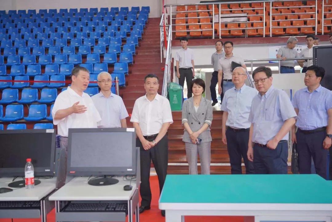 6月22日下午,高新区(滨江)区委书记王敏,区委常委、宣传部长沈建,副区长包嘉颖以及学校党委书记汤兆武、校长贺星岳一行查看了比赛现场准备情况。