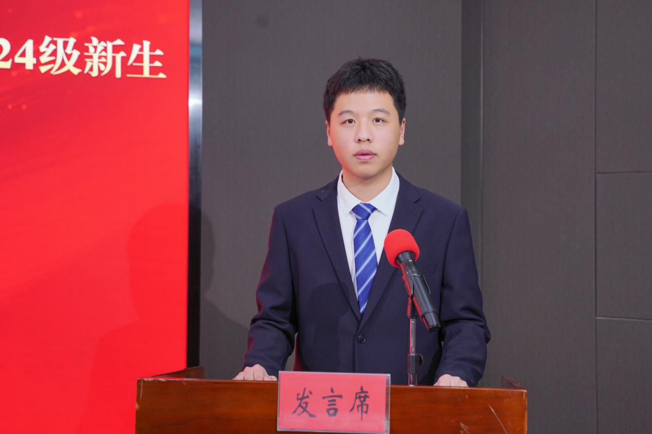 机电一体化技术专业沈炜宸代表全体新生发言。他说,进入浙机电吸收专业知识、钻研理论内涵,富厚实践经验,我们定能成为“有为”的机电人,胸怀报国之志,勇担复兴大任。