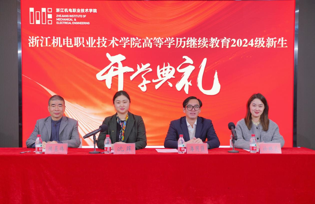 青衿之志,梦想启航。3月17日上午,浙江机电职业技术学院举行2024级高等学历继续教育新生开学典礼。学校继续教育学院副院长沈菲、校友代表潘国强、教师代表陈基伟、继续教育学院学历教育科科长徐琳芝及学历科全体人员出席典礼。典礼由徐琳芝主持。