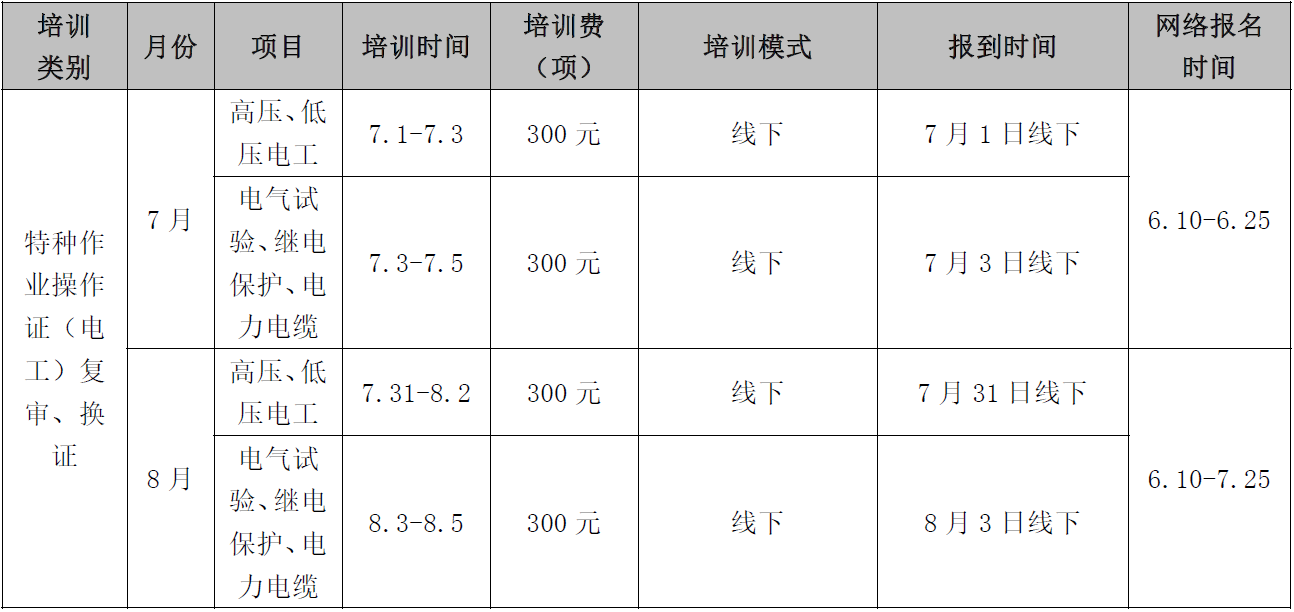 为提高电力施工企业作业人员工作能力,增强安全意识,做到持证上岗,根据《中华人民共和国安全生产法》、《浙江省安全生产条例》、《特种作业人员安全技术培训考核管理规定》(国家安全生产监督管理总局令第30号)有关规定,taptap点点结合实际情况定于2024年7-8月举办特种作业操作证(电工)培训班,现将有关事项通知如下: