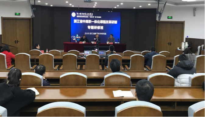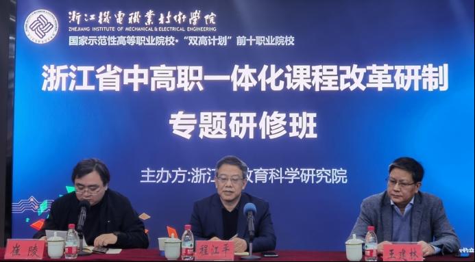 本次专题研修班为浙江省中高职一体化课程改革研制专题研修班的第一阶段课程,为期三天,分别邀请了来自华东师范大学一体化课程改革研究团队的徐国庆教授、匡瑛教授和付雪凌博士;江苏联合职业技术学院院长刘克勇、苏州建设交通高等职业技术学校党委书记郝云亮;以及浙江经贸职业技术学院副院长张红教授、浙江省教育科学规划领导小组办公室主任沈佳乐等专家莅临授课。课程围绕中高职一体化课程改革的人才需求调研、职业能力标准、专业教学标准、人才培养方案等内容。参加此次线上研修班的学员规模达到700余人,通过此次研修,来自各地的中高职教师对中高职一体化课程改革的理论内容和实践经验有了更加深入的学习了解,为积极推动全省中高职一体化课程改革重大课题研究工作打下了坚实的理论基础,进一步深化了中高职一体化课程改革研制工作机制,共同打造浙江职业教育全国样板。