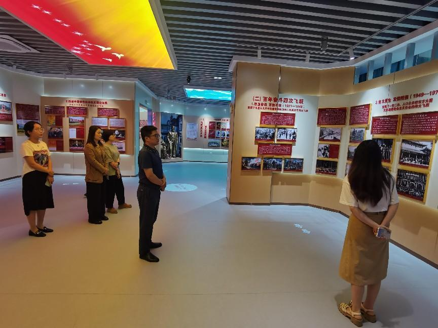 主题教育专题党课结束后,边浩毅教授带领继续教育学院全体党员开展“循迹溯源学思想促践行”活动,参观筑牢“红色根脉”主题教育实践基地,逐一听取了红色信仰、红色历程、红色旗帜、红色沃土、红色基因、红色时空等六大红色板块的讲解,观看了以图文、实物展陈、VR沉浸体验、视听展播等多形式呈现的中国共产党理论创新与实践发展成果。