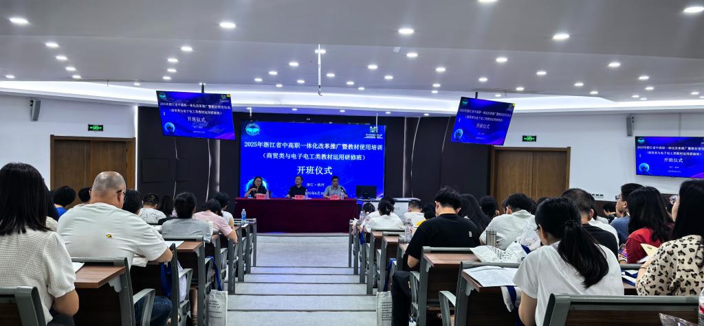 为进一步推动全省职业教育贯通培养,助力系统化、一体化地构建长学制人才培养体系,深化中高职一体化教育教学改革,有力推广中高职一体化教材应用,6月16日,由浙江省教育科学研究院主办,taptap点点官方网站承办的2025年浙江省中高职一体化改革推广暨教材使用培训班(商贸类、电子电工类专业)在滨江校区顺利开班。浙江省教育厅职成教研究室主任崔陵、继续教育学院院长边浩毅,及来自全省商贸类、电子电工专业的170余名骨干教师参加开班仪式。开班仪式由浙江省教育厅职成教研究室副主任于丽娟主持。