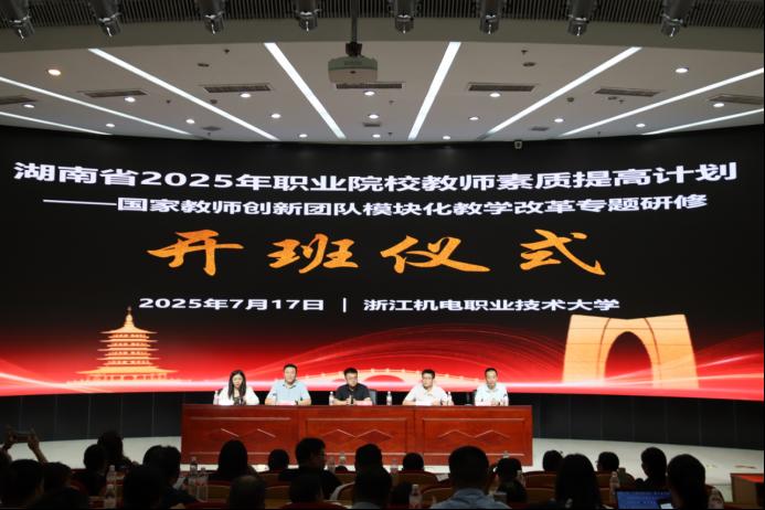 7月17日上午,2025年湖南省“职业院校教师素质提高计划”国家教师创新团队模块化教学改革专题研修班开班仪式在taptap点点官方网站滨江校区隆重举行。本次研修由湖南省教育厅主办,来自湖南省13所高职院校的128名骨干教师齐聚杭州,开启为期一周的学习之旅。