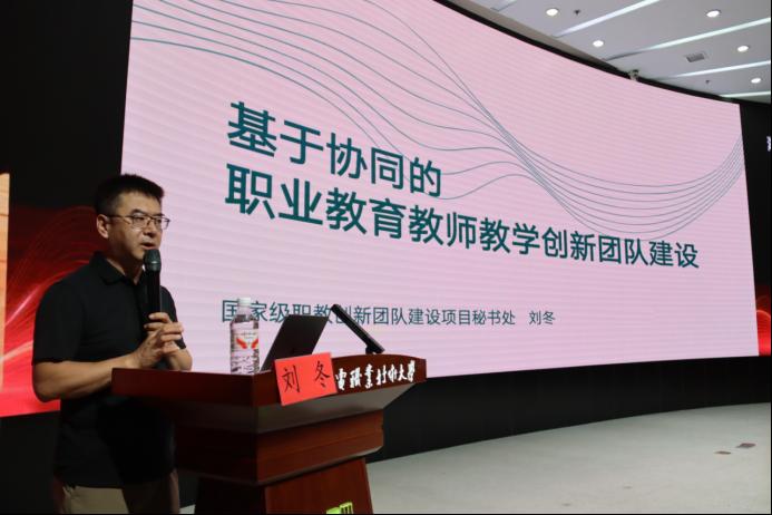 开班仪式后,刘冬主任作《基于协同的职业教育教师教学创新团队建设》专题授课,他从国家职教改革战略出发,系统讲解教师教学创新团队协同机制与建设路径,分析团队建设内涵与常见问题,并就下一步如何做好团队建设提出了针对性建议。授课内容理论联系实际,为参训教师提供了宝贵的指导。