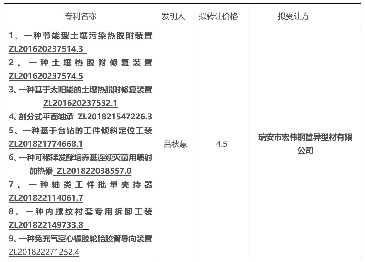 关于专利转让的公示