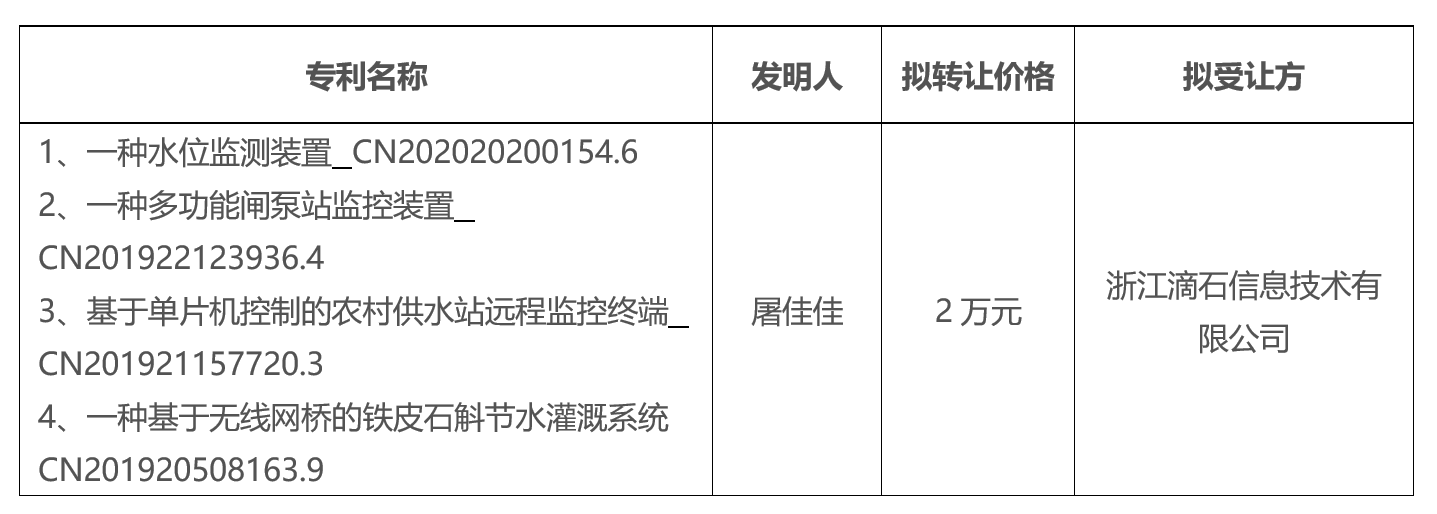 按照《浙江机电职业技术学院专利技术转让管理办法(修订)》(浙机电院〔2016〕34号)的规定,现将我院拟转让的专利予以公示,公示期15日,自2020年11月16日至11月30日。任何单位和个人如有异议,可在公示期内前以书面形式送交科技开发处(地址:综合楼1810)。异议应当签署真实姓名或加盖单位公章,并注明联系方式,逾期不予受理。