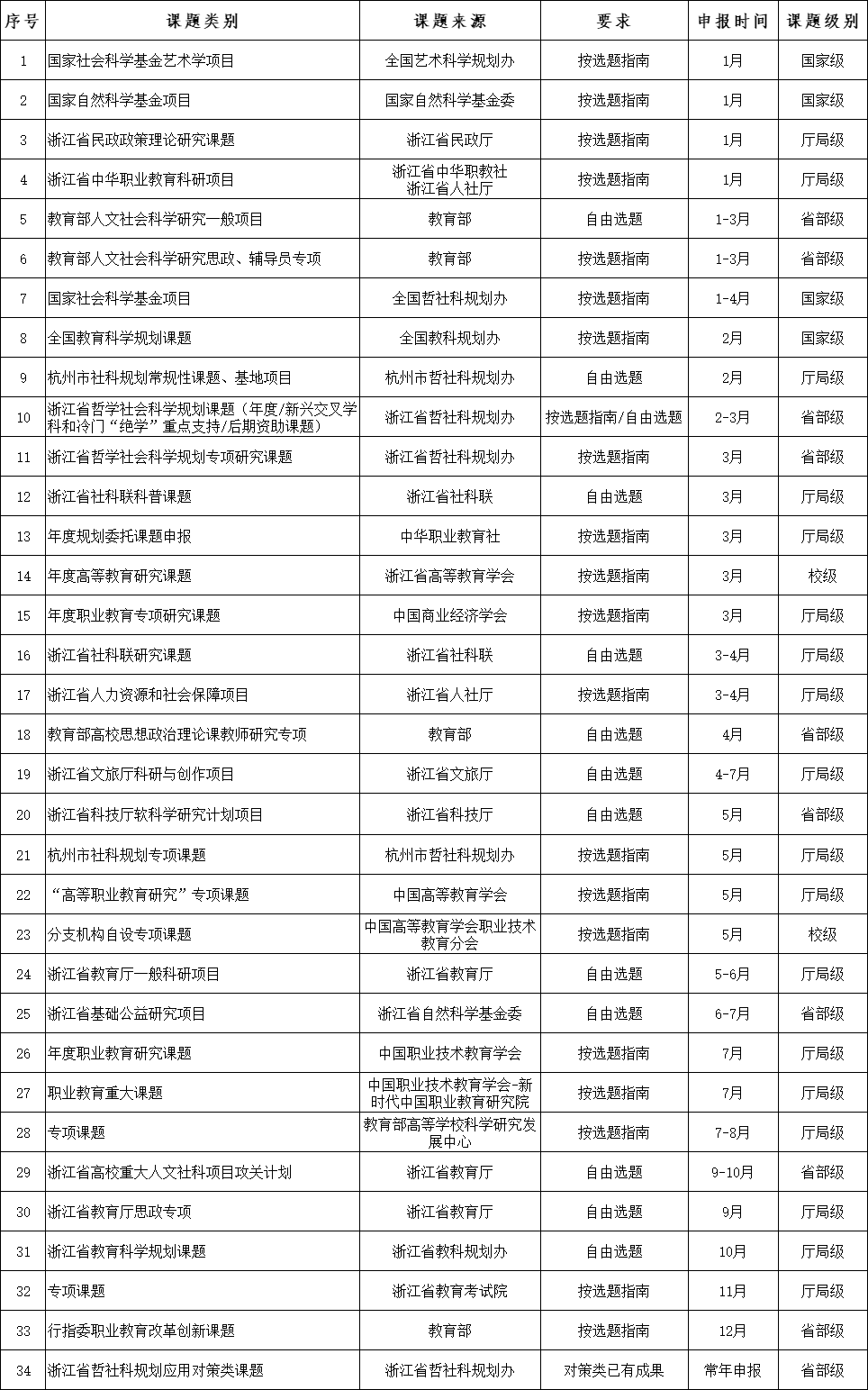 注:以上所有课题的申报信息参照历年申报情况,准确信息以网上通知为准。请各位教师以此作为参考,提前做好各类课题的申报准备。