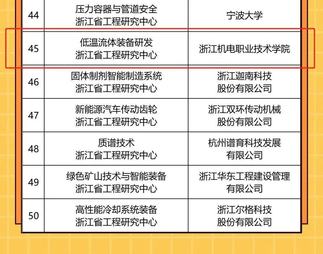 近日,浙江省发改委公布“2022年新一批省工程研究中心名单”,浙江机电职业技术学院申报的“低温流体装备研发浙江省工程研究中心”成功立项。学校为该项目今年全省高职院校唯一入选院校。