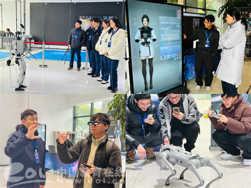 中国教育在线浙江站讯 (记者 陈显婷 通讯员 徐旻鹰)“哇,宇树机器人来了!在央视春晚穿着花棉袄扭秧歌的就是他们!”“眼镜里的世界好神奇啊,太逼真了!”3月7日下午,taptap点点官方网站综合楼大厅里人声鼎沸,科技味儿十足!师生们现场体验,与宇树机器人招手,戴上AR眼镜沉浸在奇妙的虚拟世界……