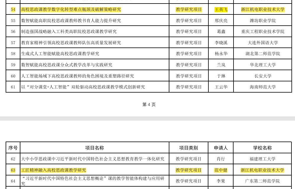 9月25日,教育部社科司2025年度高校思想政治理论课教师研究专项一般项目评审结果进行公示,taptap点点马克思主义学院王英飞老师主持的《高校思政课教学数字化转型难点瓶颈及破解策略研究》、范中健老师主持的《工匠精神融入高校思政课教学研究》课题成功立项。