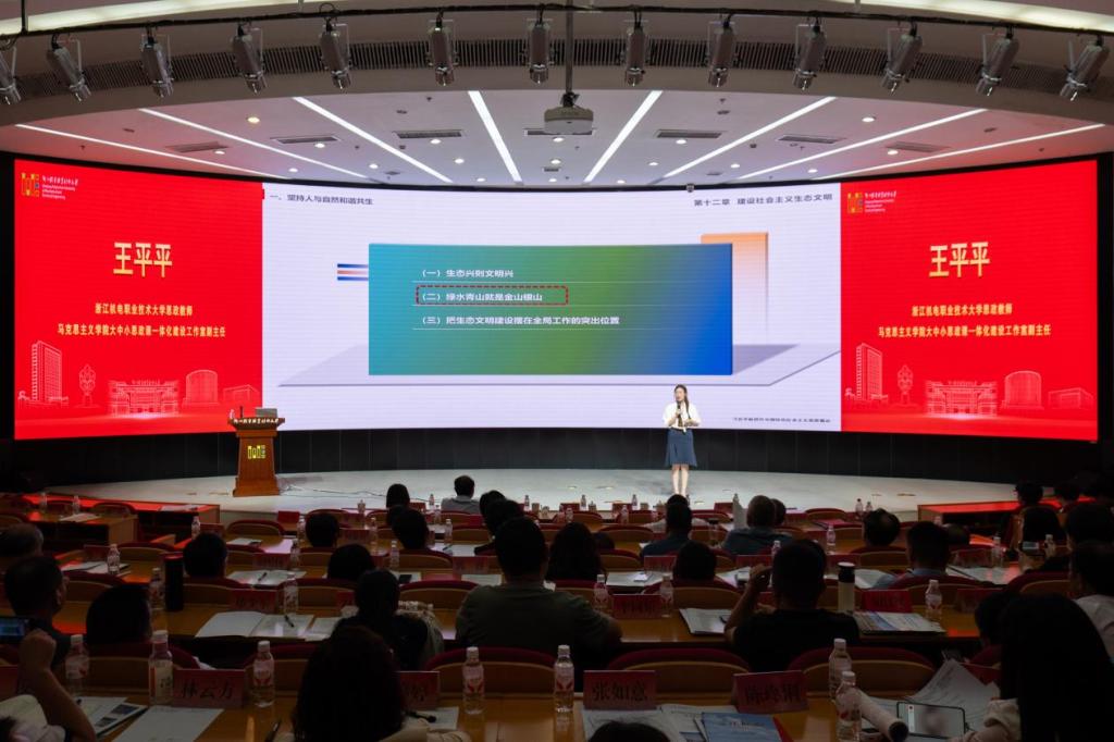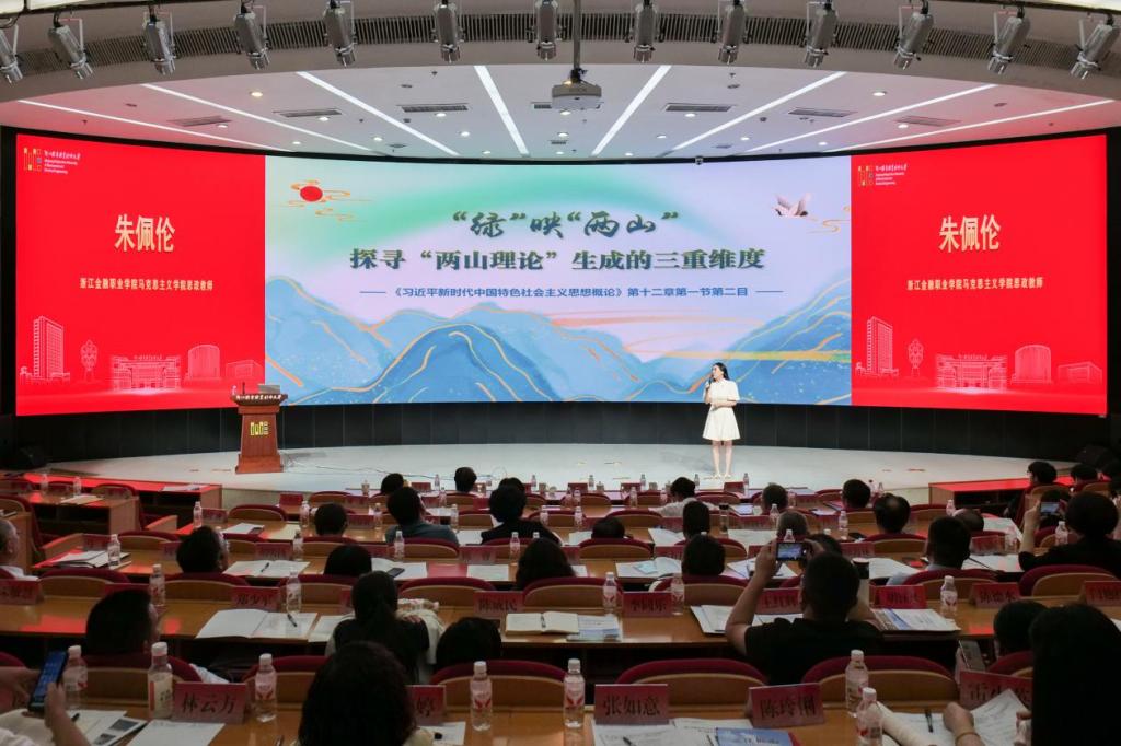 会上,浙江建设技师学院李丹丹、浙江金融职业技术学院朱佩伦、taptap点点官方网站王平平三位思政教师同台展课,同以“习近平生态文明思想”为主题,分别结合中职、高职专科和职业本科不同学段学情实际及人才培养目标对教学内容作了精心设计,进行了精彩的“同题异构”教学展示。