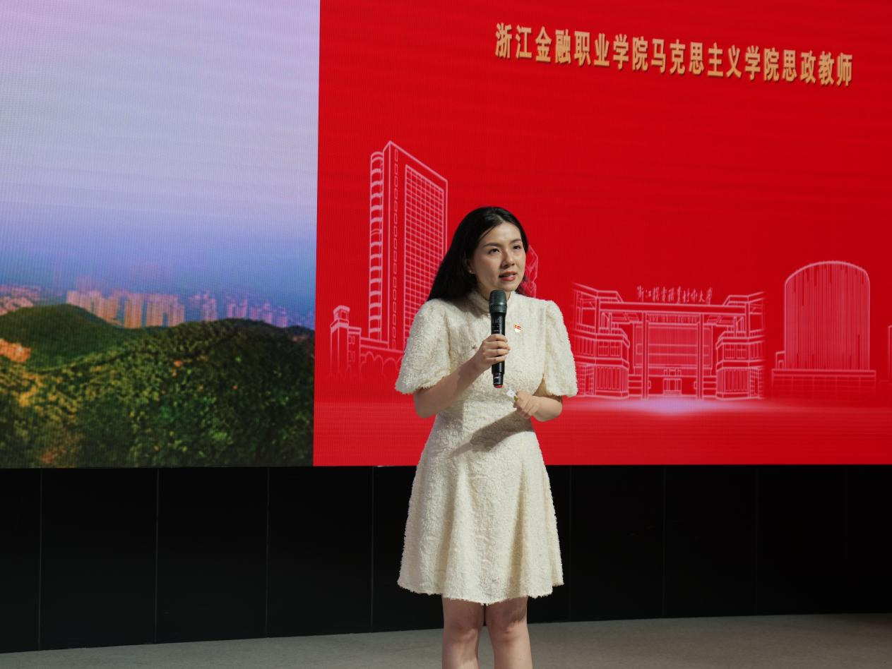 朱佩伦老师以《“绿”映“两山”:探寻“两山理论”生成的三重维度》为题,通过剖析“两山理论”的生成逻辑与浙江实践成效,引导学生从生态、经济、社会三重维度审视绿色发展,激励高职生以专业为支点,在技术革新、产业转型中撬动“绿水青山”向“金山银山”的转化之力。