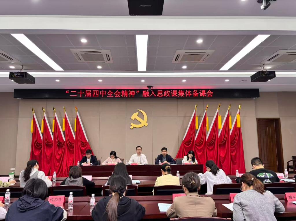 10月29日下午,马克思主义学院召开“党的二十届四中全会精神”融入思政课集体备课会。马克思主义学院院长查广云主持集体备课并作专题报告。备课会旨在深入学习领会党的二十届四中全会精神的基础上,探讨将四中全会精神系统、准确、生动地融入各门思政课的教学路径,认真落实习近平总书记关于党的创新理论与思政课建设同步推进的重大要求。学院全体思政课教师参加了会议。