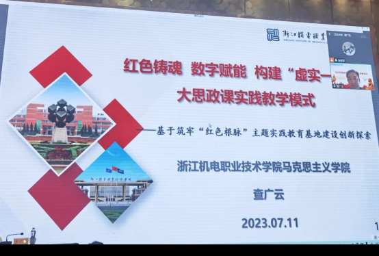 查教授指出,浙江机电职业技术学院马克思主义学院近年来坚持以“大思政”课理念和“八个相统一”为根本遵循,依托浙江“红色根脉”资源优势和学校“双高”院校的数字化智慧校园优势,强力推进信息化赋能思政课创新,着力建构“虚实一体”大思政课实践教学新模式,并在学校大力支持下创建了筑牢“红色根脉”主题教育实践基地,积极探索基于大历史观、大数据观、大实践观视域下的“红色铸魂 数字赋能‘虚实一体’大思政课”实践育人新模式,不断深化虚拟与现实、历史与现实、理论与实践融合育人新成效。