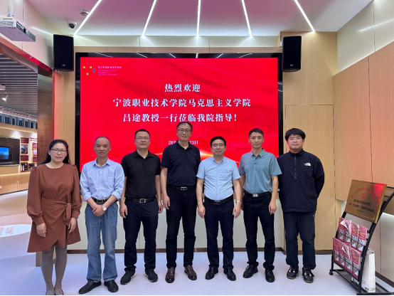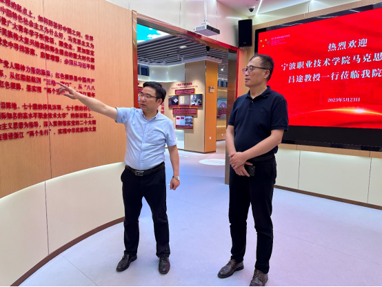 2023年5月23日,宁波职业技术学院马克思主义学院吕途教授一行来浙江机电职业技术学院马克思主义学院考察交流,马克思主义学院院长查广云教授以及相关思政课教师陪同考察,并就场馆建设、思政课改革、实践教学探索等方面进行了深入交流。