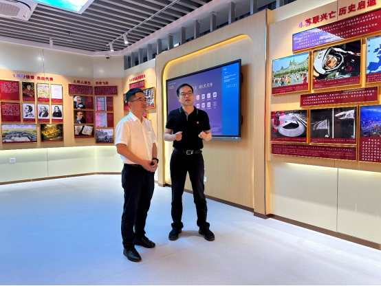 熊峰对湖州职业技术学院金祥一行来访表示热烈欢迎,并介绍了我院筑牢“红色根脉”主题教育实践基地的建设背景和使用情况。浙江机电职业技术学院筑牢“红色根脉”主题教育实践基地总建筑面积560余平方米,基地依托浙江“红色根脉”资源优势,以体验式教育理论为支撑,以百年党史发展为主轴,以弘扬伟大建党精神、赓续党的“红色根脉”为主题内容,以图片实物一体、音视频同步,多维展陈资源相结合的沉浸式教学场景赋能大思政课。