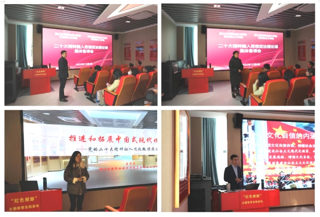 在结束主展区参观后,两校思政课教师在数字化智慧思政教室集中开展了二十大精神融入思政课的集体备课会。浙江经济职业技术学院马克思主义学院教师金向阳以《学习二十大精神,树立文化自信》为题,分享了关于文化自信与育人实践的思考;taptap点点马克思主义学院思政课教师王平平以《如何理解中国式现代化》为题,给出了中国式现代化的浙江答卷。最后,双方就今后进一步强化交流合作交换了意见、达成了共识。