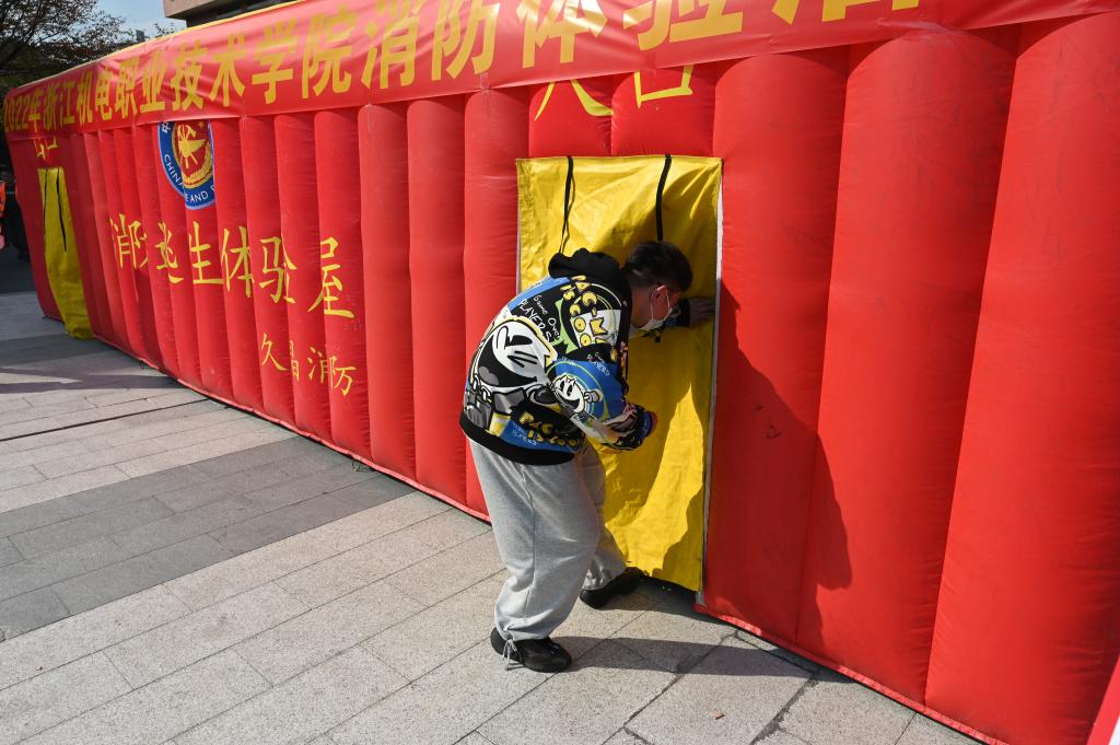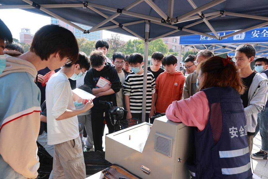 与此同时,为了让同学们更好地体验到火灾现场的真实感、紧张感,保卫处特别推出的“闯关卡”游戏互动、逃生体验屋,模拟灭火、触电体验等受到了同学们的喜爱和追捧,纷纷前往试用体验。