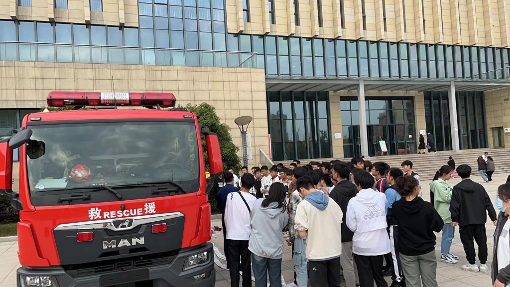 海宁校区消防演练现场,教学楼烟气浓密,警报声响彻校区,师生们在学校安保人员的疏散引导下,弓身沿着疏散指示通道跑出,在最快的时间内有序地从教室撤离到安全地带。医疗救援、消防人员、校安保人员快速反应,个个训练有素,组织灭火救援和疏散演练工作顺利完成。