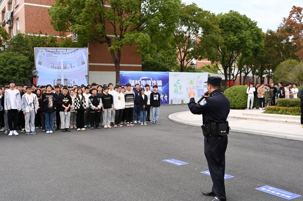下午13点,活动正式拉开帷幕,保卫处处长诸玉富介绍到场的嘉宾,副校长周纯江宣布活动正式开始,两校区应急演练同步启动。