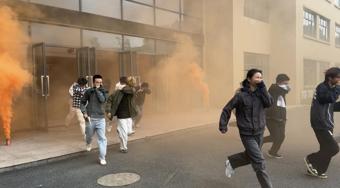 随着烟气逐渐弥漫至教学楼浓密,警报声响彻校区,师生们迅速相应,立即在学校安保人员和橄榄绿社员的疏散引导下,捂住口鼻,弓身沿着疏散指示通道紧急撤离到指定场地。医疗救援、消防人员、校安保人员快速反应,个个训练有素,组织灭火救援和疏散演练工作顺利完成。