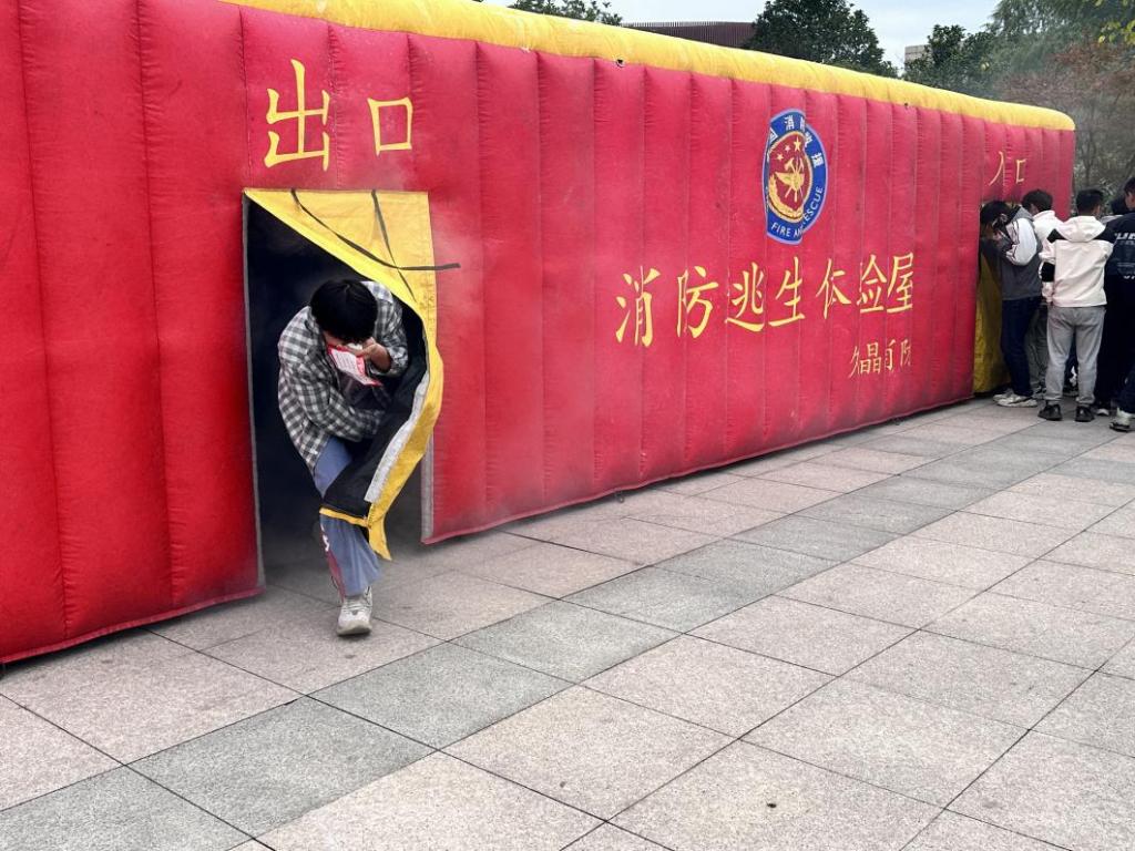 随后,为了让同学们更好地体验到火灾现场的真实感、紧张感,保卫处还特别推出“消消火大闯关”游戏,有逃生体验屋,模拟灭火、触电体验、灭火切身体验、安全标识识别体验等活动,现场展示的一个又一个火灾真实案例,再次敲响师生们的安全警钟,切实让大家意识到加强安全用电、规范实验的重要性。